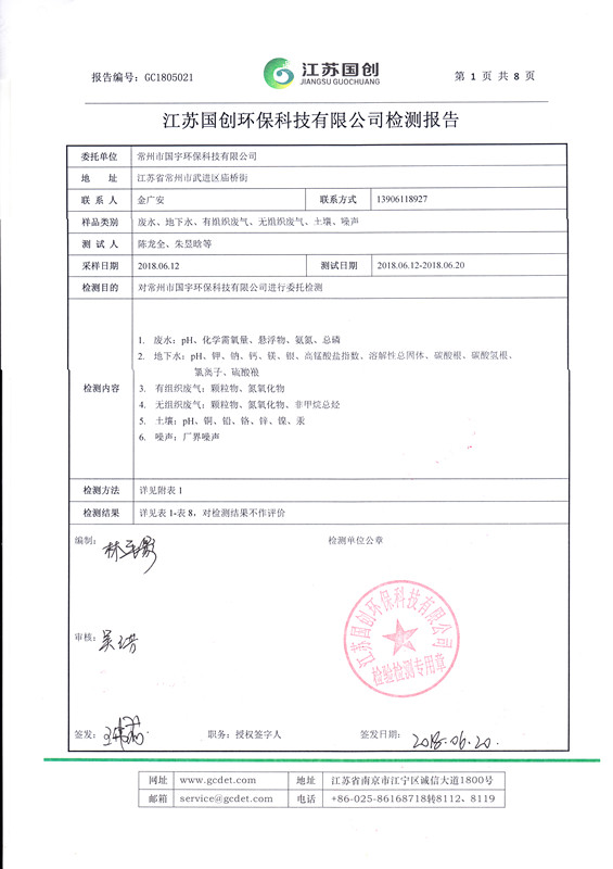 2018年廢水、地下水、廢氣、土壤、噪聲的檢測
