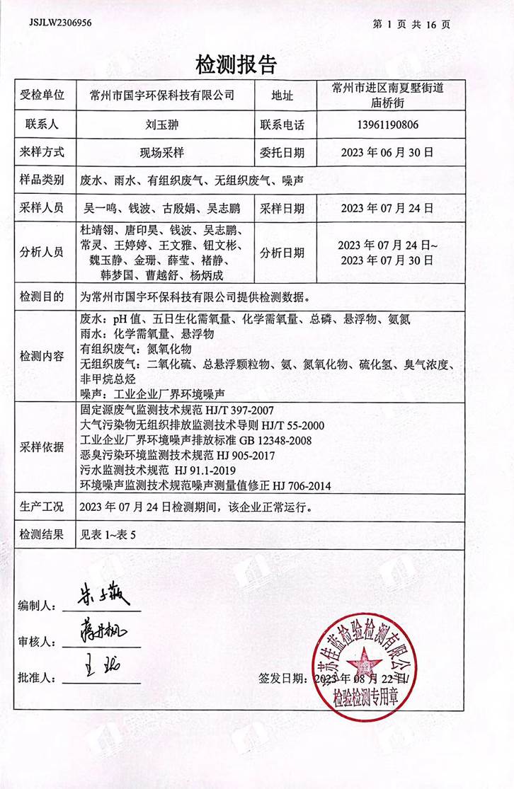 廢水、雨水、有組織廢氣、無(wú)組織廢氣、噪聲檢測(cè)報(bào)告