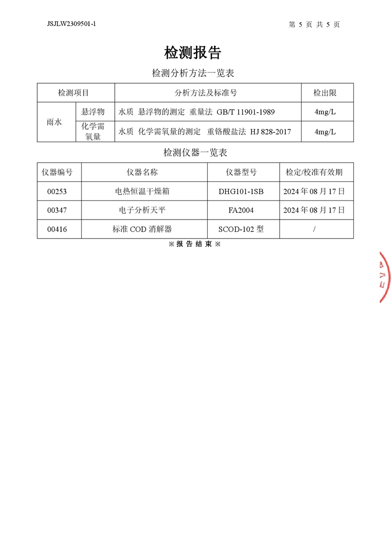 雨水:化學(xué)需氧量、懸浮物檢測(cè)